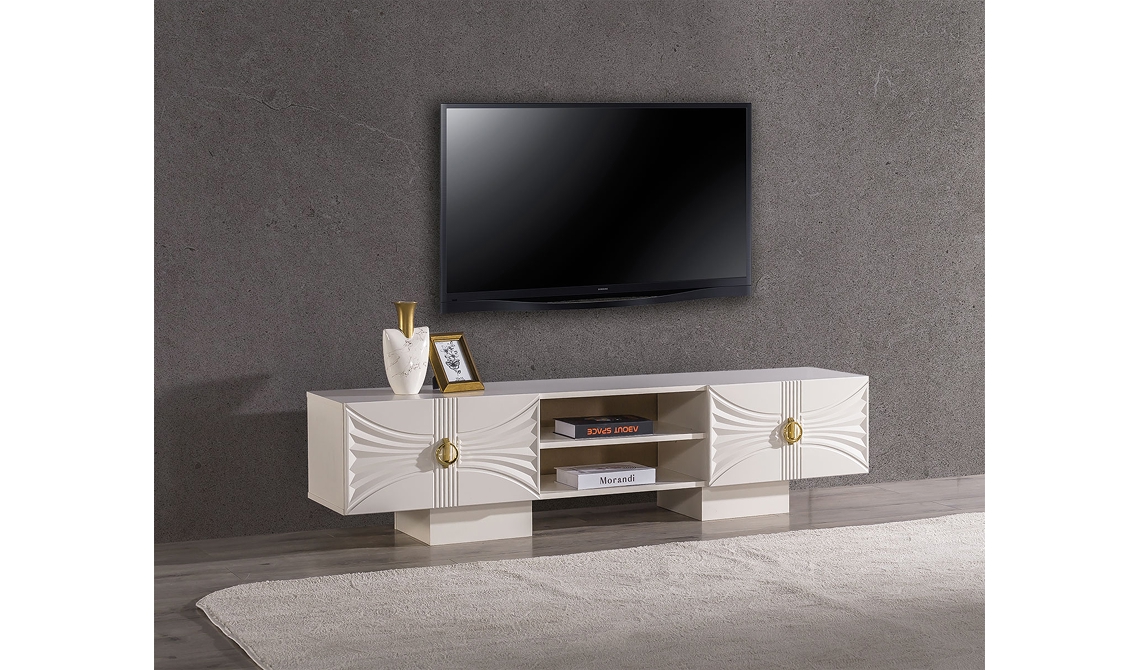 Dora TV Ünitesi, modern ve sade tasarımıyla yaşam alanına şıklık kazandırır. Kullanışlı raf ve bölmeleri sayesinde elektronik eşyalarınızı düzenli ve estetik şekilde sergilemenizi sağlar.