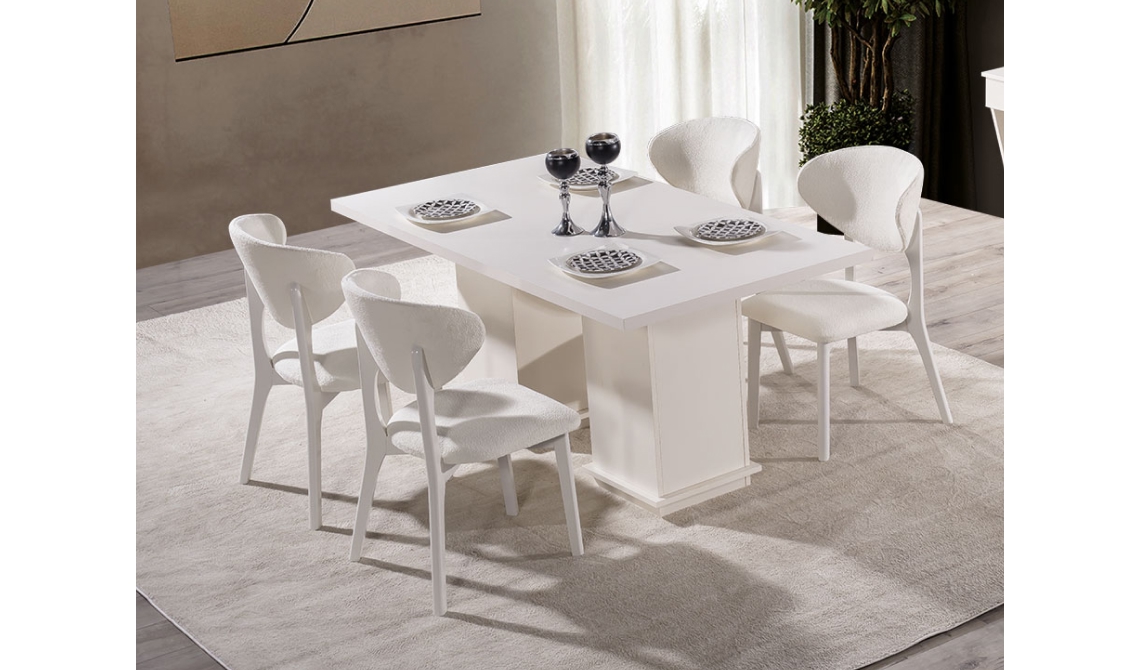 Opal Yemek Masası, modern ve sade tasarımıyla yemek alanına şıklık kazandırır. Geniş ve kullanışlı yüzeyi sayesinde keyifli ve konforlu sofralar için ideal bir kullanım sunar.