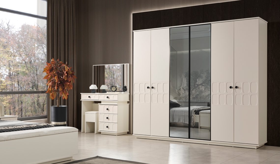 Petek Gardırop, modern tasarımı ve fonksiyonel iç düzeniyle yatak odasında düzeni kolaylaştırır. Geniş iç hacmi sayesinde eşyalarınızı pratik ve konforlu şekilde saklamanızı sağlar.