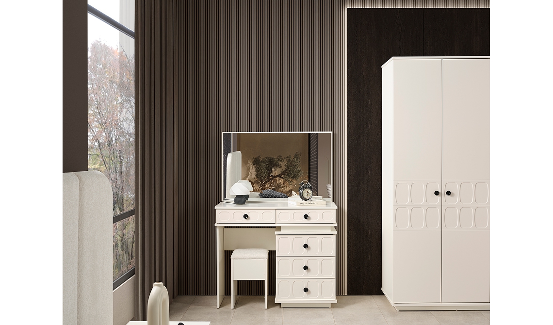 Petek Şifonyer, sade ve modern tasarımıyla yatak odasına şıklık katar. Kullanışlı çekmeceleri sayesinde eşyalarınızı düzenli ve kolay erişilebilir şekilde saklamanızı sağlar.