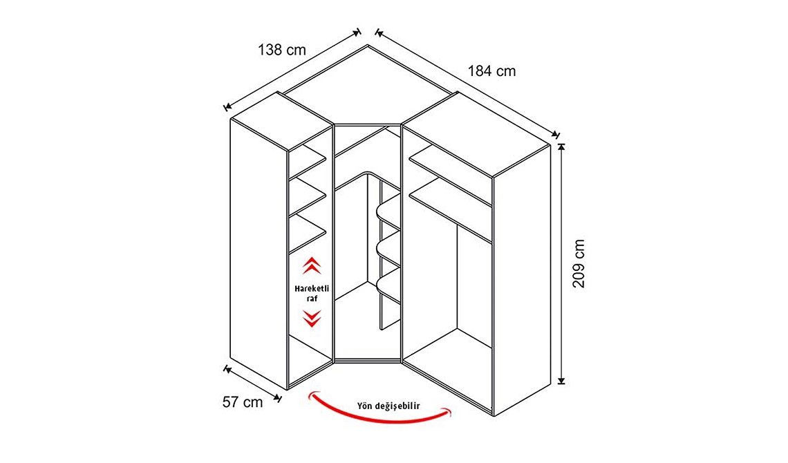 | 4 Kapılı Köşe Dolap | 184 cm | 138 cm | 209 cm |