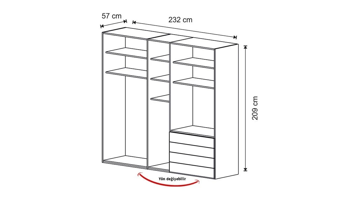 | 5 Kapılı Dolap | 232 cm | 57 cm | 209 cm |