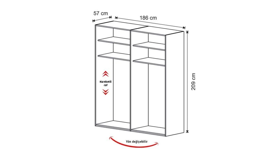 | 4 Kapılı Dolap | 186 cm | 57 cm | 209 cm |
