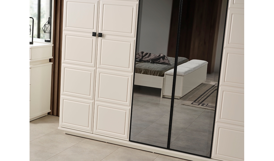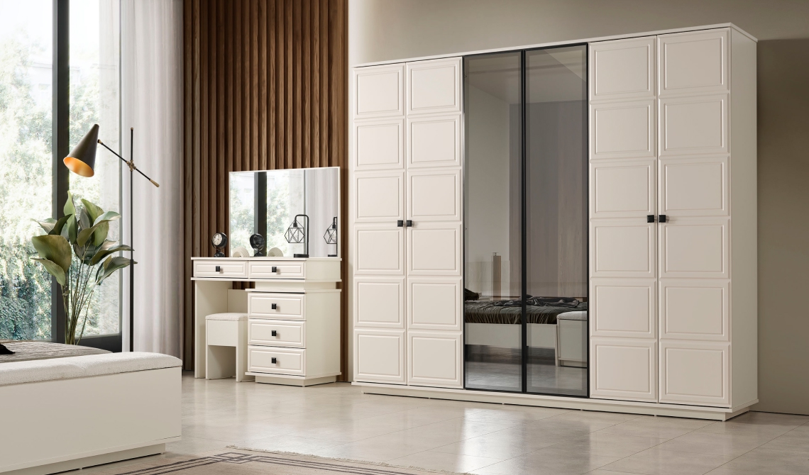 Vizyon Gardırop, modern ve güçlü tasarımıyla yatak odasına şık bir görünüm kazandırır. Geniş iç hacmi sayesinde eşyalarınızı düzenli ve konforlu şekilde saklamanızı sağlar.